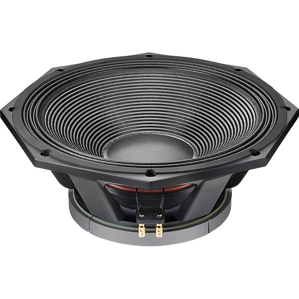 • Triple-rolled cloth surround with deep corrugations and double spider design to give better control of cone excursion.