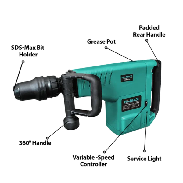 The variable speed controller allows operators to adjust the machine’s speed according to project requirements, ensuring optimal performance in every application. With max bits boasting enhanced capability for tougher materials and higher torque for continuous operation, the IC-011D Demolition Hammer is the ultimate choice for professional-grade performance.